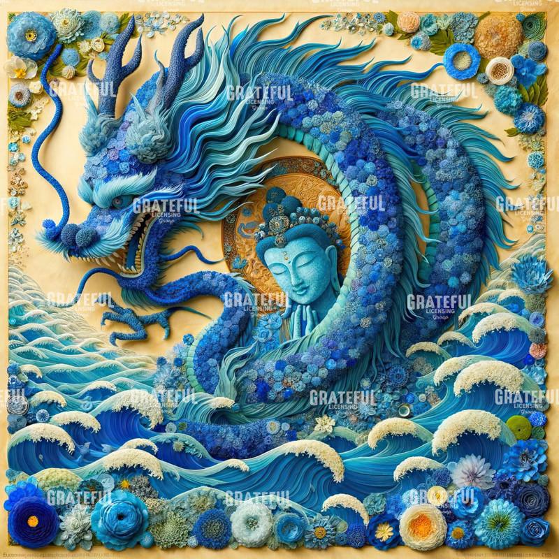 Tags: 3D, blue, Buddha, collage, flowers, under the dragon, wave, waves, yellow