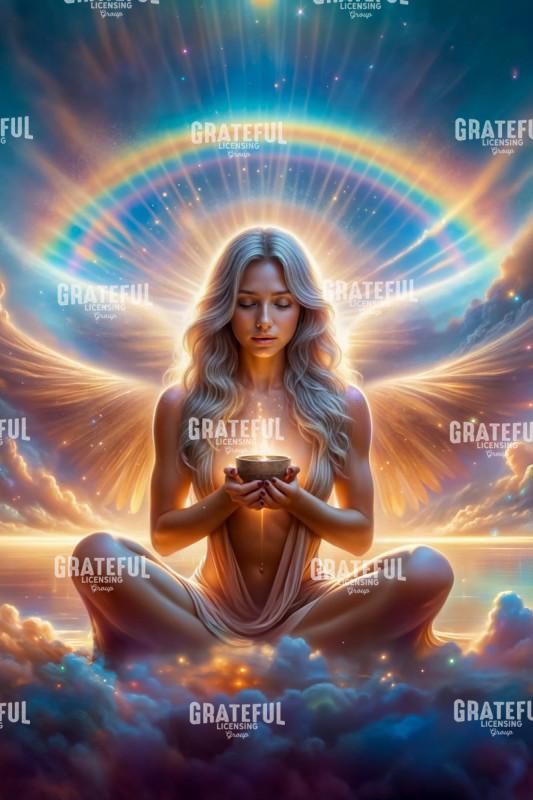Tags: angel, colorful, glow, gold, golden, meditation, pray, praying, psychedelic, rainbow, trippy, woman, yoga