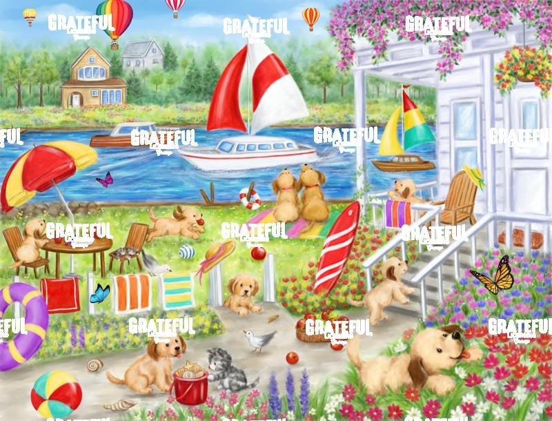 Tags: cabin, Dogs at Riverside, hot air balloon, puppies, puppy, sail boat, summer, umbrella