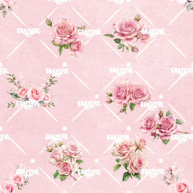 Petaled Lattice 11-Pink Roses Minimal Pattern on Pink with White Grid Tile