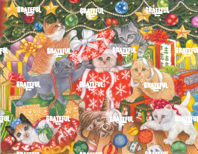 Tags: cats, gifts, ornaments, Playful Christmas Kittens, presents, tree, wrapping paper