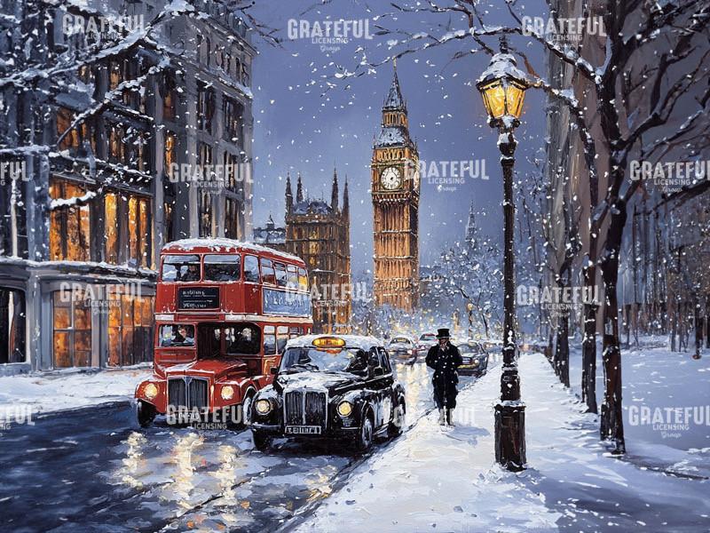 Tags: big ben, Christmas, city street, double decker bus, england, great britain, light post, London, snow, snowing, snowy, street lamp, united kingdom, winter