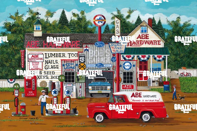 Tags: Abe Hardware, bob's garage, folk art, gas station, hardware store, painting, primitive, truck