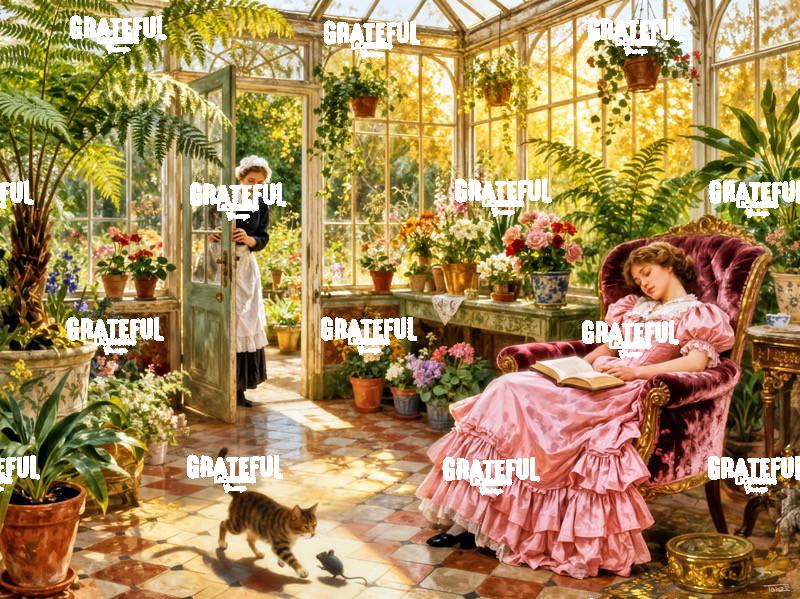 Tags: Afternoon Nap, cat, garden, greenhouse, plants, sleeping, woman