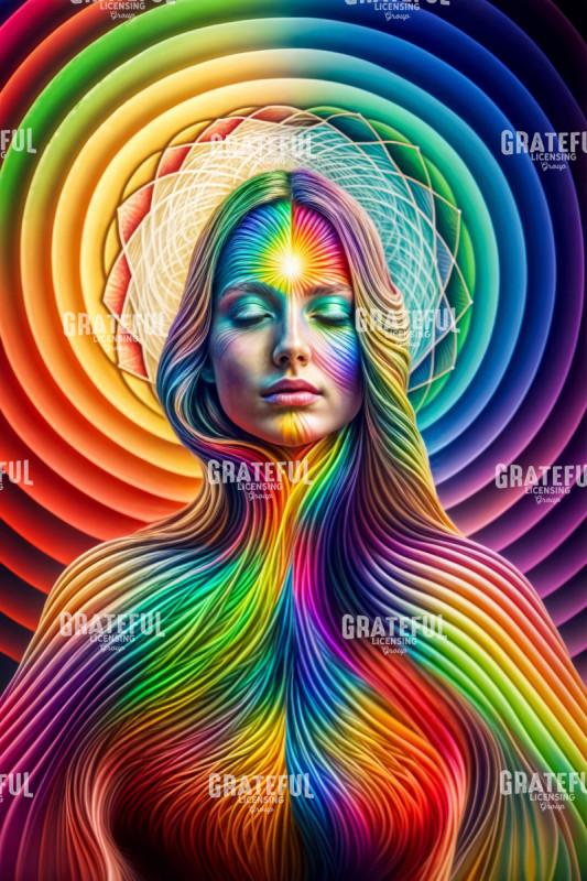 Tags: awakening, colorful, halo, psychedelic, rainbow, sacred geometry, trippy, vibration, woman