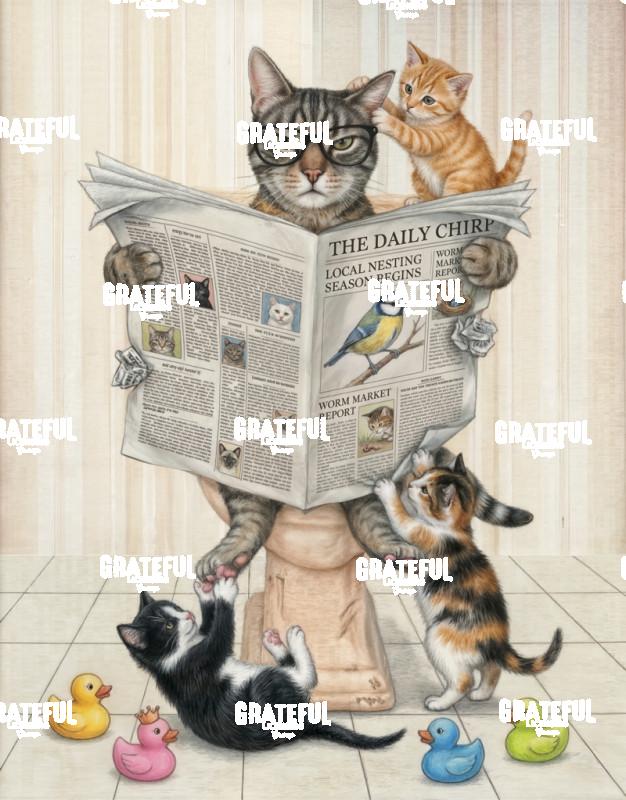 HomeArtwork GalleryAnimalsCat on the Toilet with Annoying Kittens and Ducks.png Cat on the Toilet with Annoying Kittens and Ducks.png Artwork by: Wumples Add to WishlistAlready In Wishlist Add to Wishlist SKU: WUMPLE154599 Category: Animals Tags: animal, bathroom, cat, humor, kittens, newspaper, reading, toilet Product ID: 57572 Related artwork animal, bison, blue sky, buffalo, tall grassLone Bison Read more Add to WishlistAlready In Wishlist Add to Wishlist 3 ducks, blue, blue background, brown, green, mallard, trio, watercolorPuddle Duck Trio Read more Add to WishlistAlready In Wishlist Add to Wishlist bird, feathers, full moon, great horned owl, nature, night sky, owlGreat Horned Owl Read more Add to WishlistAlready In Wishlist Add to Wishlist