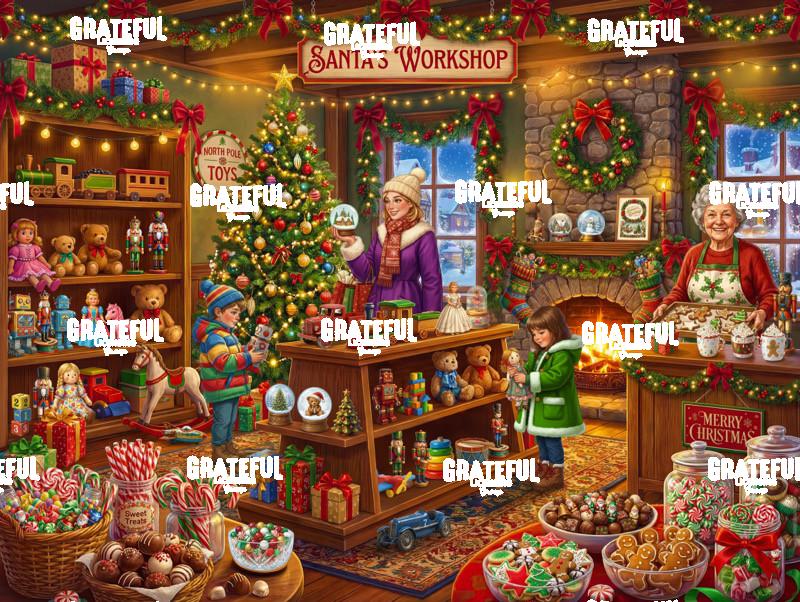 Tags: candy, Christmas store, cookies, fireplace, interior, shopping, sweets, toys, treats, tree