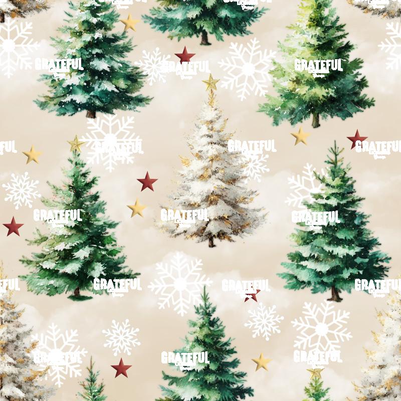 Christmas Trees and Snowflakes Repeating Pattern, Beige