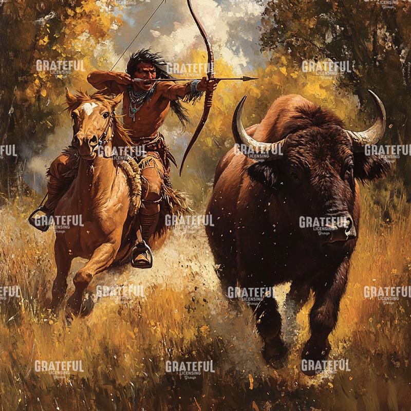Tags: animals, bow and arrow, brown, buffalo, coming of age, horse, hunter, hunting, native american, nature, wildlife, yellow