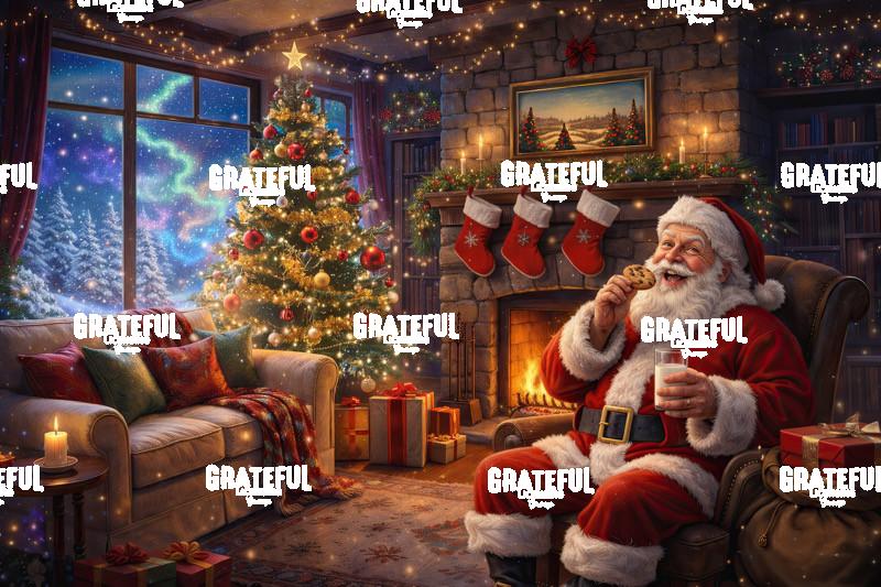 Tags: christmas tree, Cookie Break, cookies, cozy, fireplace, northern lights, Santa, stockings, view, window