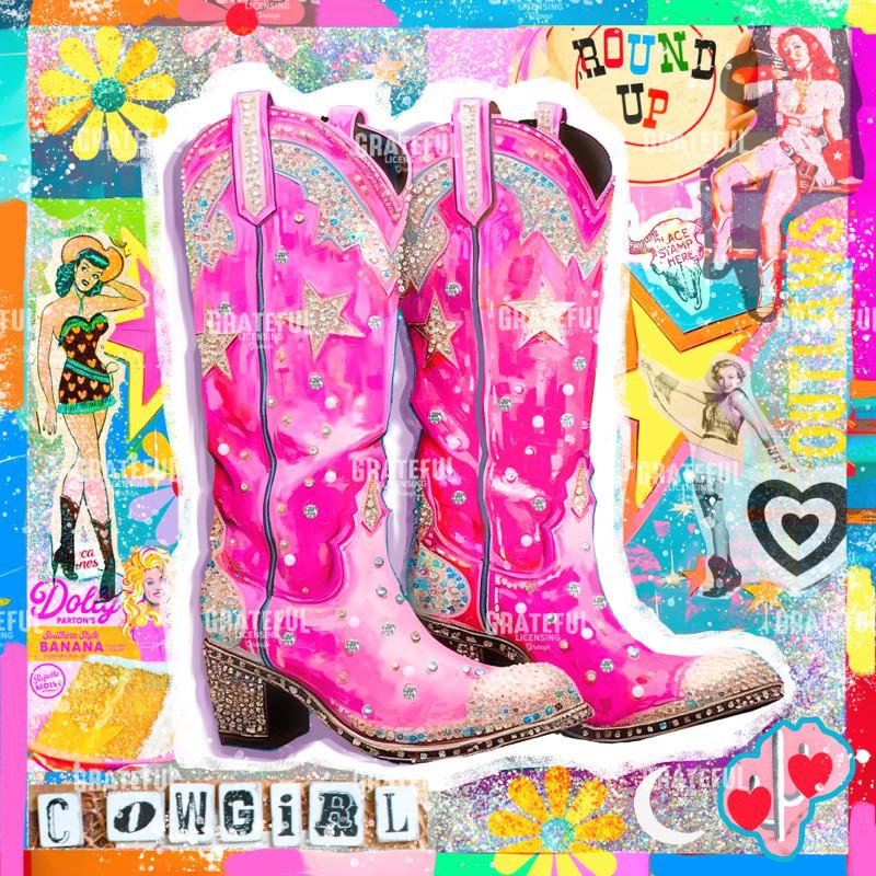 Tags: Boots, bright, colorful, cowgirl, fuchsia, heart, neon, pin up, pink, pink boots, pop art, rainbow, retro, round up, vintage