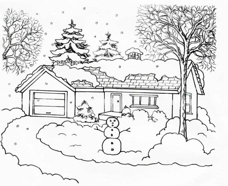 Tags: black, coloring book, drawing, house, line art, outline, sketch, snow, snow day, snowing, snowman, snowy, white, winter