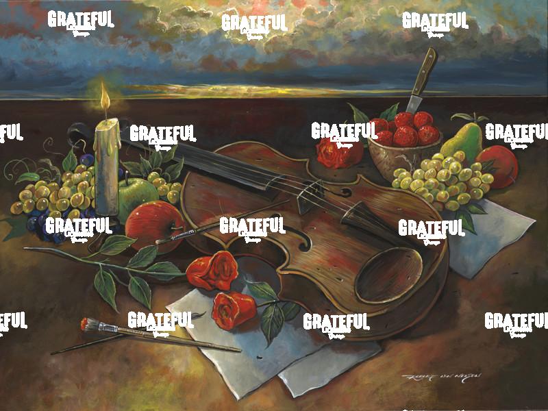 Tags: Candle, fruit, grapes, Illumination Without Time, instrument, music, painting, pear, roses, violin