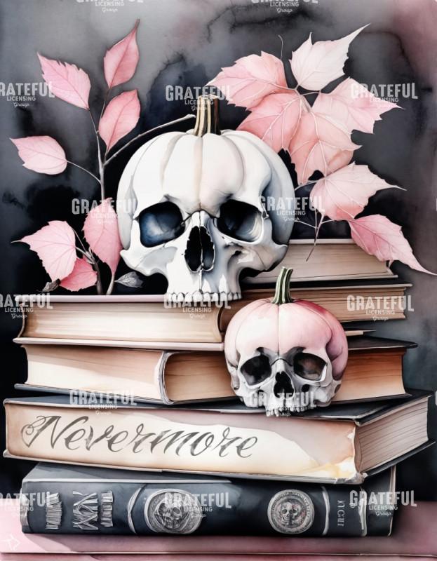 HomeArtwork GalleryHalloweenNevermore Pumpkin Skulls Watercolor Nevermore Pumpkin Skulls Watercolor Artwork by: Tabz Jones Add to WishlistAlready In Wishlist Add to Wishlist SKU: TABJON143665 Category: Halloween Tags: black, books, gold, gray, grey, Halloween, nevermore, pink, skeleton, skull, white Product ID: 36231 Related artwork Halloween, haunted, house, spooky, trick or treatHaunted House Read more Add to WishlistAlready In Wishlist Add to Wishlist black cat, Halloween, Witch CatWitch Cat Read more Add to WishlistAlready In Wishlist Add to Wishlist black cat, ghost, Halloween, house, illuminated, jack-o-lantenrn, jack-o-lantern, pumpkins, skeleton, spooky, witch hatHalloween Spooky House Read more Add to WishlistAlready In Wishlist Add to Wishlist