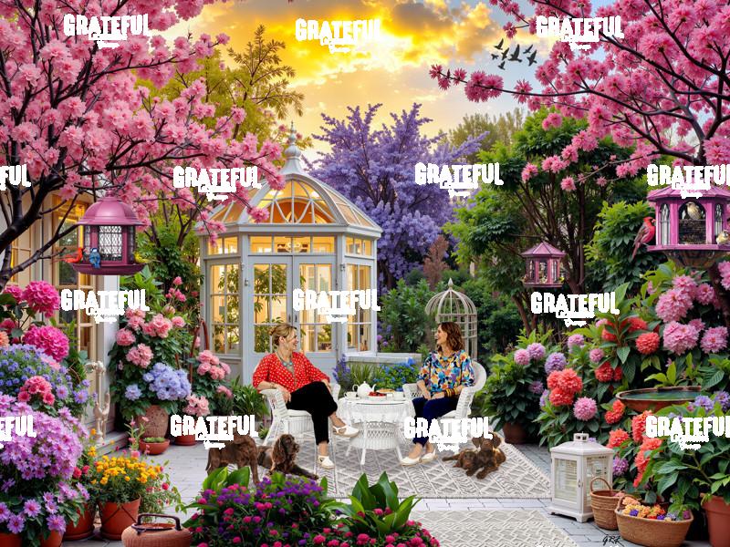 Tags: backyard, bird house, cherry trees, dogs, friends, gazebo, patio, spring