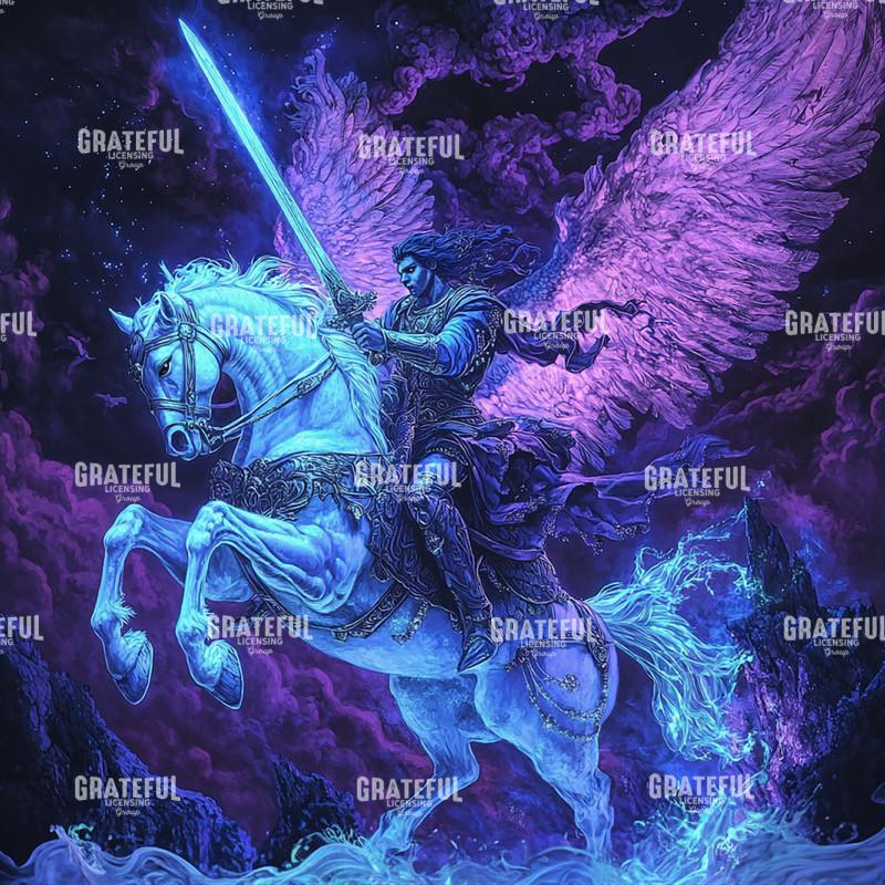 Tags: battle, blue, fantasy, horse, purple, whimsical, wings