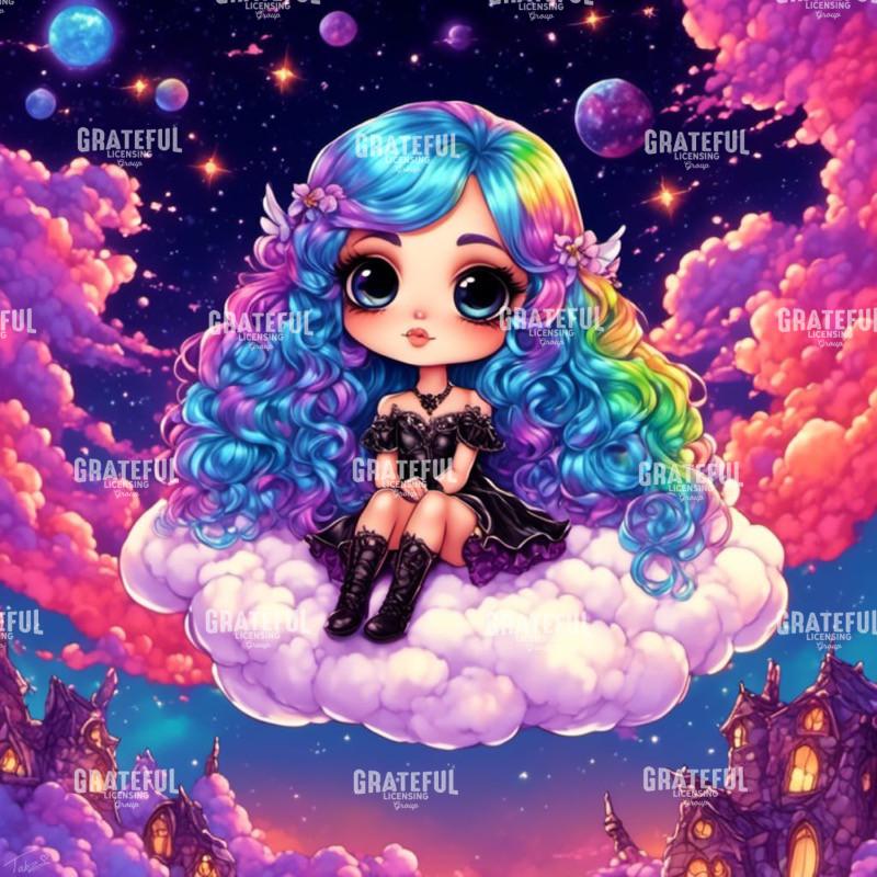Tags: black, blue, bubble, cloud, dress, galactic, girl, hair, moon, rainbow, sit, sky
