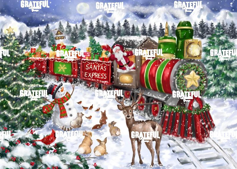 Tags: animals, Bunnies, cardinal, Christmas train, christmas tree, deer, gifts, presents, rabbits, Santa Express, snowman