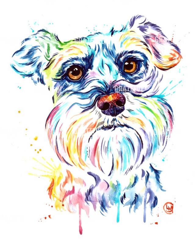 Tags: animal, bold, bright, colorful, cute, dog, multicolored, rainbow, Schnauzer, splatter, watercolor
