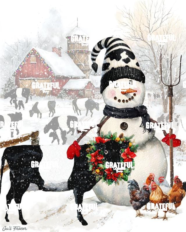 Tags: barn, chickens, Christmas, roosters, Snowman Farm with Cow