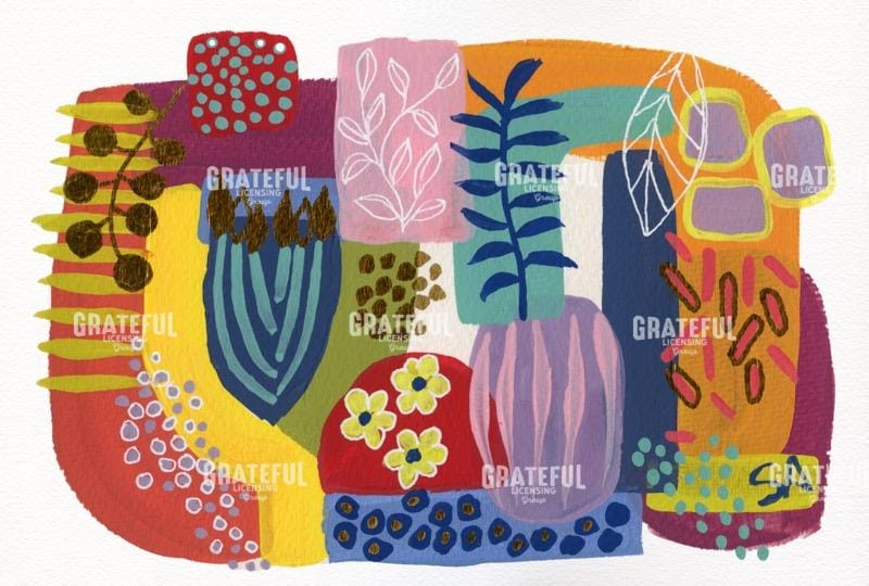 Tags: abstract, aqua, blue, botanical, color block, colorful, green, leaves, multi colored, orange, painting, plants, plum, rainbow, turquoise