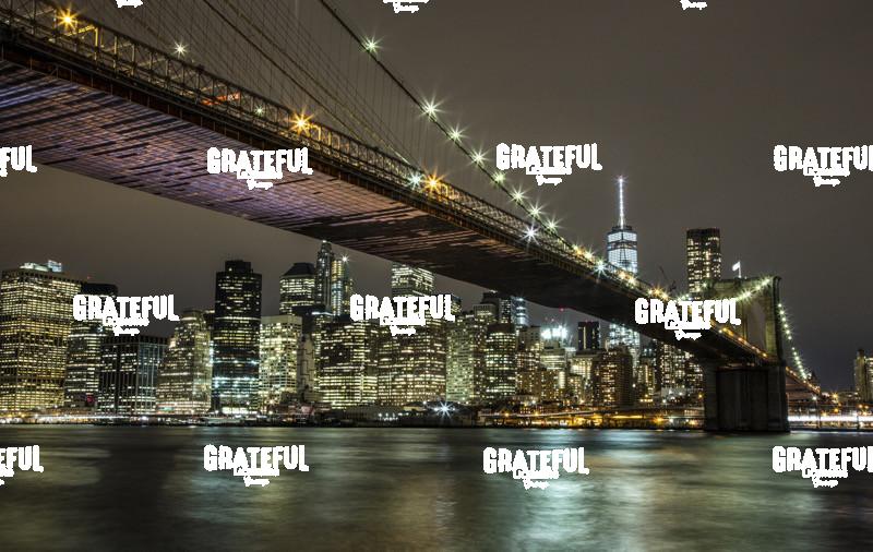 The Brooklyn Bridge and view of NYC after dark