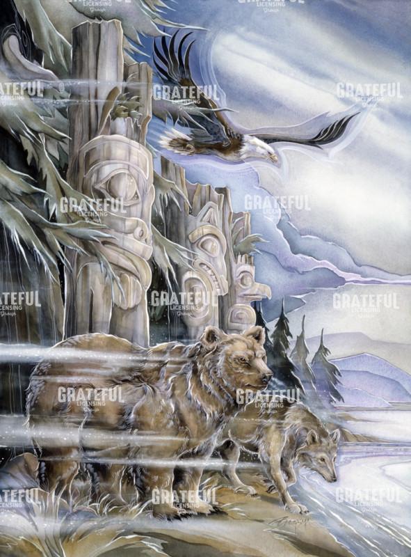 Tags: animals, bald eagle, bear, blue, eagle, grizzly bear, nature, tan, three watchmen, totem, totem pole, wilderness, wolf
