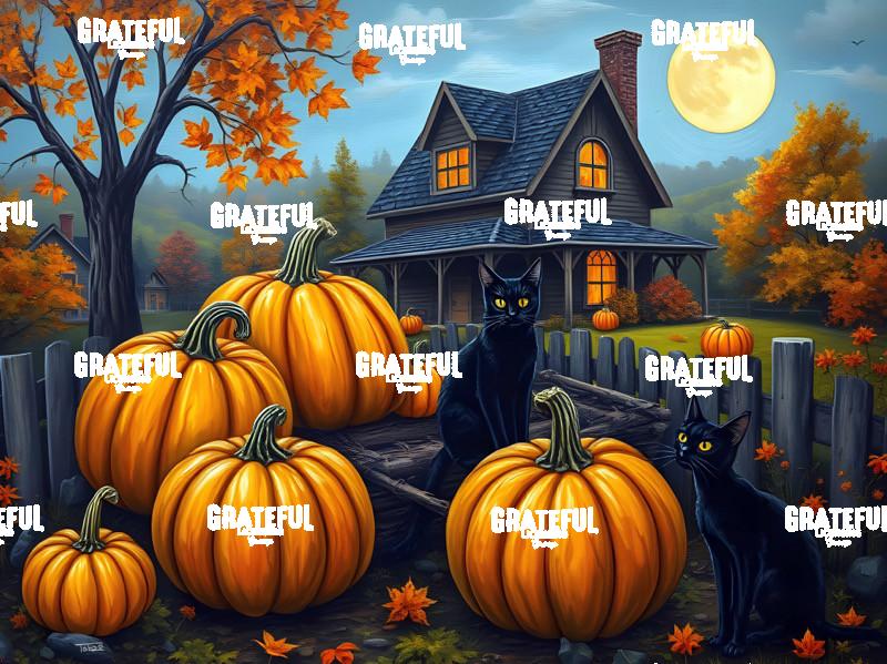 Tags: fall, full moon, Halloween, house, pumpkins, Two Black Cats