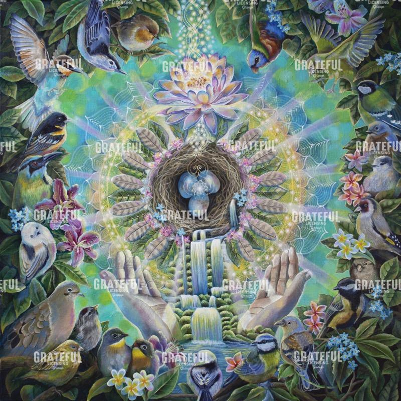 Tags: 3 eggs, birds, butterflies, divine sanctuary, eggs, feathers, glow, green, hands, leaves, lily, lotus, mandala, natural, nature, nest, painting, plumeria, radiate, spirit, spiritual, waterfalls, yellow