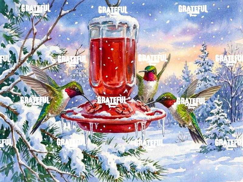 Tags: animal, bird, enchanted, feed, feeder, Flower, Humming, hummingbird, nature, red, snow, winter