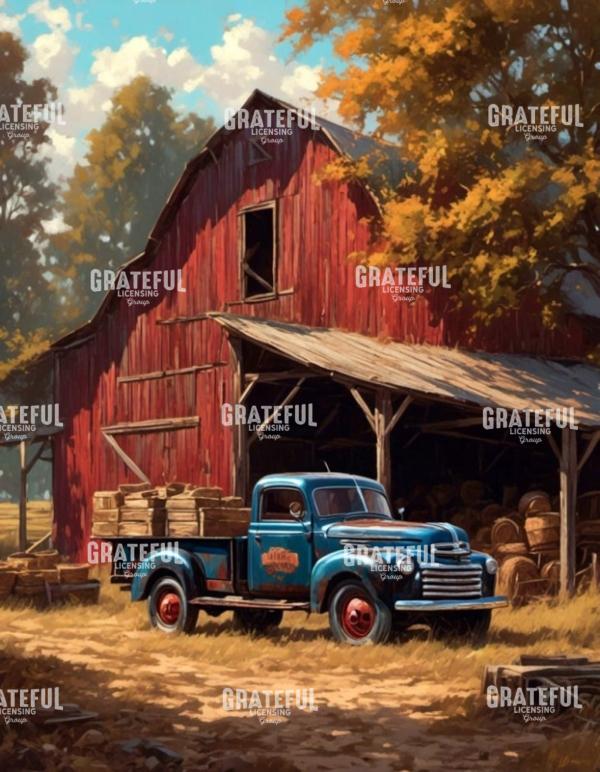 Read morebarn, country, farm, farmhouse, gray, green, grey, hay bales, muted tones, old truck, overgrown, parked out by the barn, rust, rustic, rusty, vintage